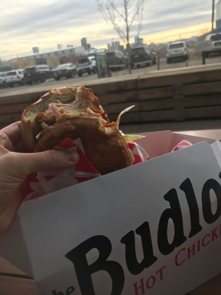 The Budlong started in Chicago, a long-established foodie city, and this eatery lives up to its foodie roots. The specialty at the Budlong is Nashville hot chicken featuring sandwiches, tenders, wings, and more. I had the coveted Hot Chicken sandwich (it’s perfect). It has the right amount of heat, a slather of its flavorful ‘comeback’ sauce, and a heap of coleslaw to cool it down. It comes on a brioche bun, too, which is always good.