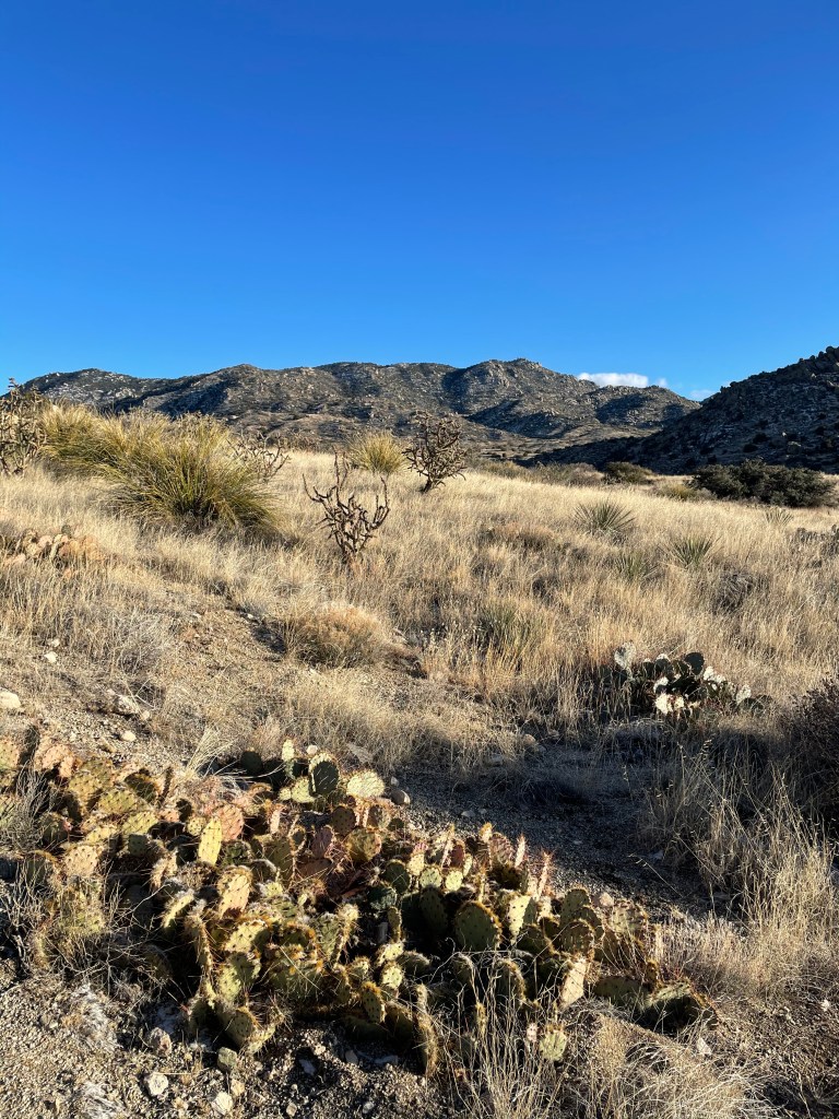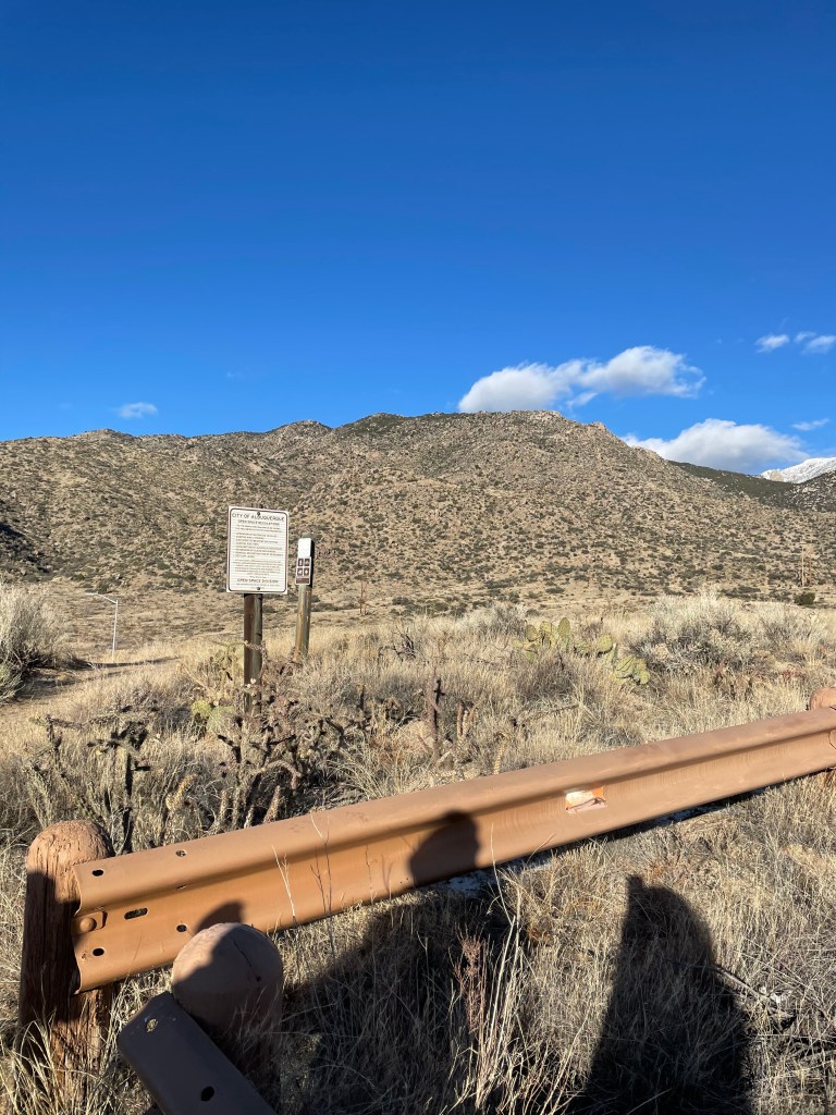 The trail in one direction has views of the Sandia foothills, and on the other, an expansive view of Albuquerque’s skyline and beyond. It was 4:30 PM, around sundown, so the lighting highlighted the whole landscape beautifully.