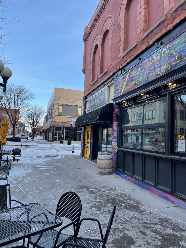 We stopped for breakfast in Pueblo which is just south of Colorado Springs. We went to Solar Roast Coffee and got coffee and breakfast burritos. If you ever need to stop for coffee in Pueblo, I would go to Solar Roast, there aren’t many options in Pueblo, but this one is solid. It has a cute, artsy vibe and they also sell their roasted coffee beans which you can buy in the coffee shop – you can also buy the beans online or at most Natural Grocers grocery stores in Colorado.