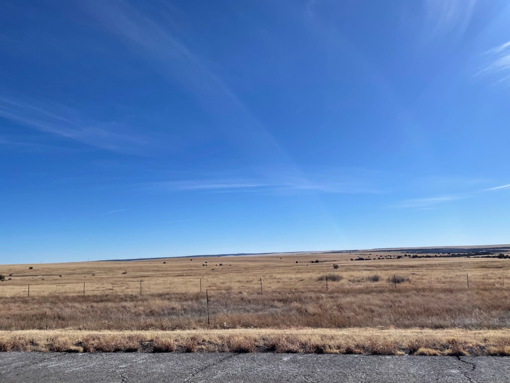 Once we crossed the border in New Mexico, the snow let up, and the sun came out. We breathed a sigh of relief and vowed to check the weather a little bit closer for all future road trips. As you can see in the photo above, the roads are clear, and the skies are blue.