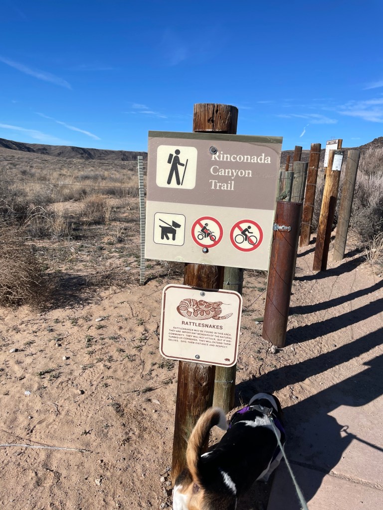 The trail had a very desert-y vibe. I can imagine this trail in the summer can get hot, so we were there at a good time. The trailhead sign warned of rattlesnakes, which is concerning for Poogie being so low to the ground, but I think it was still too cold for them to come out of hibernating.
